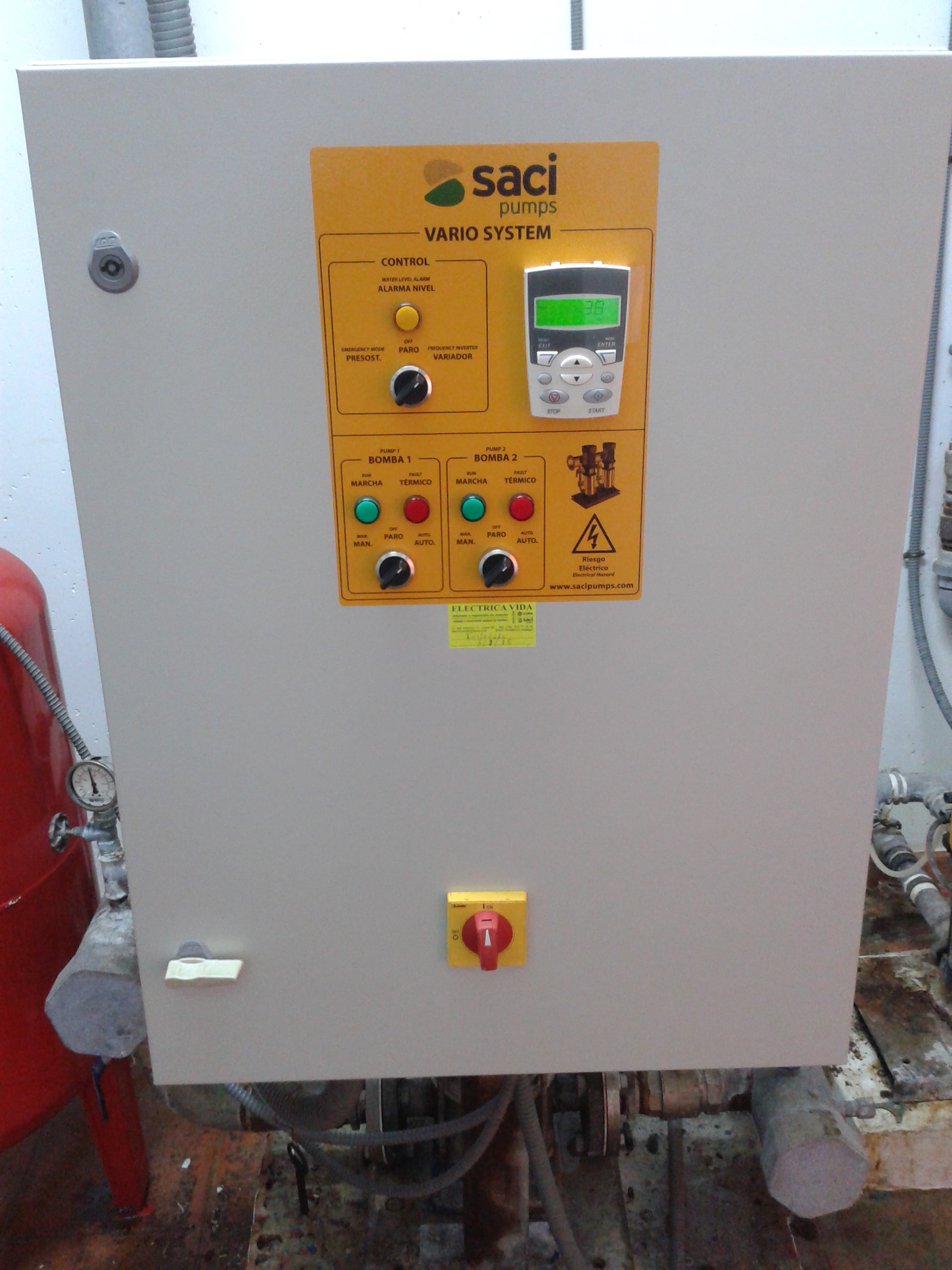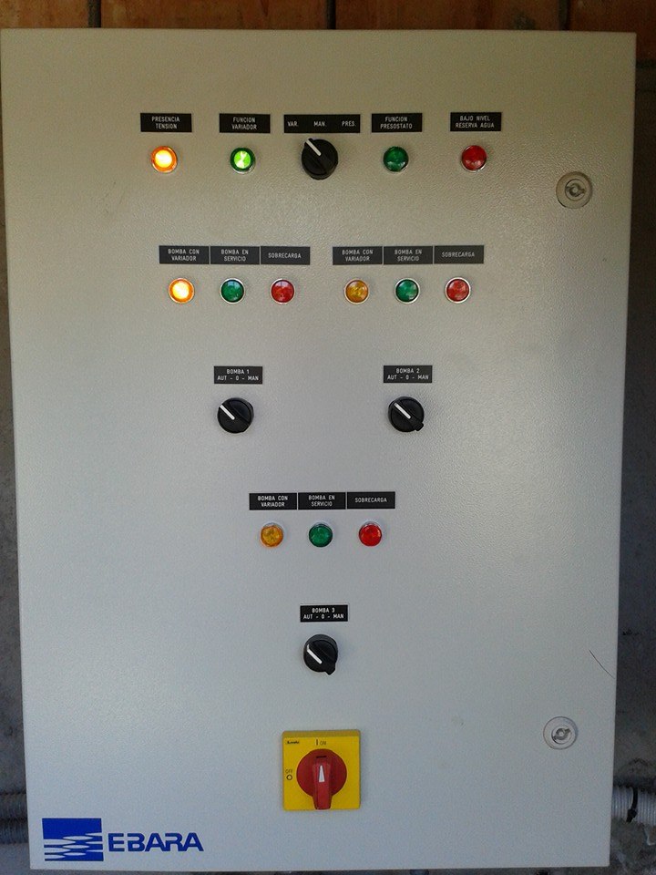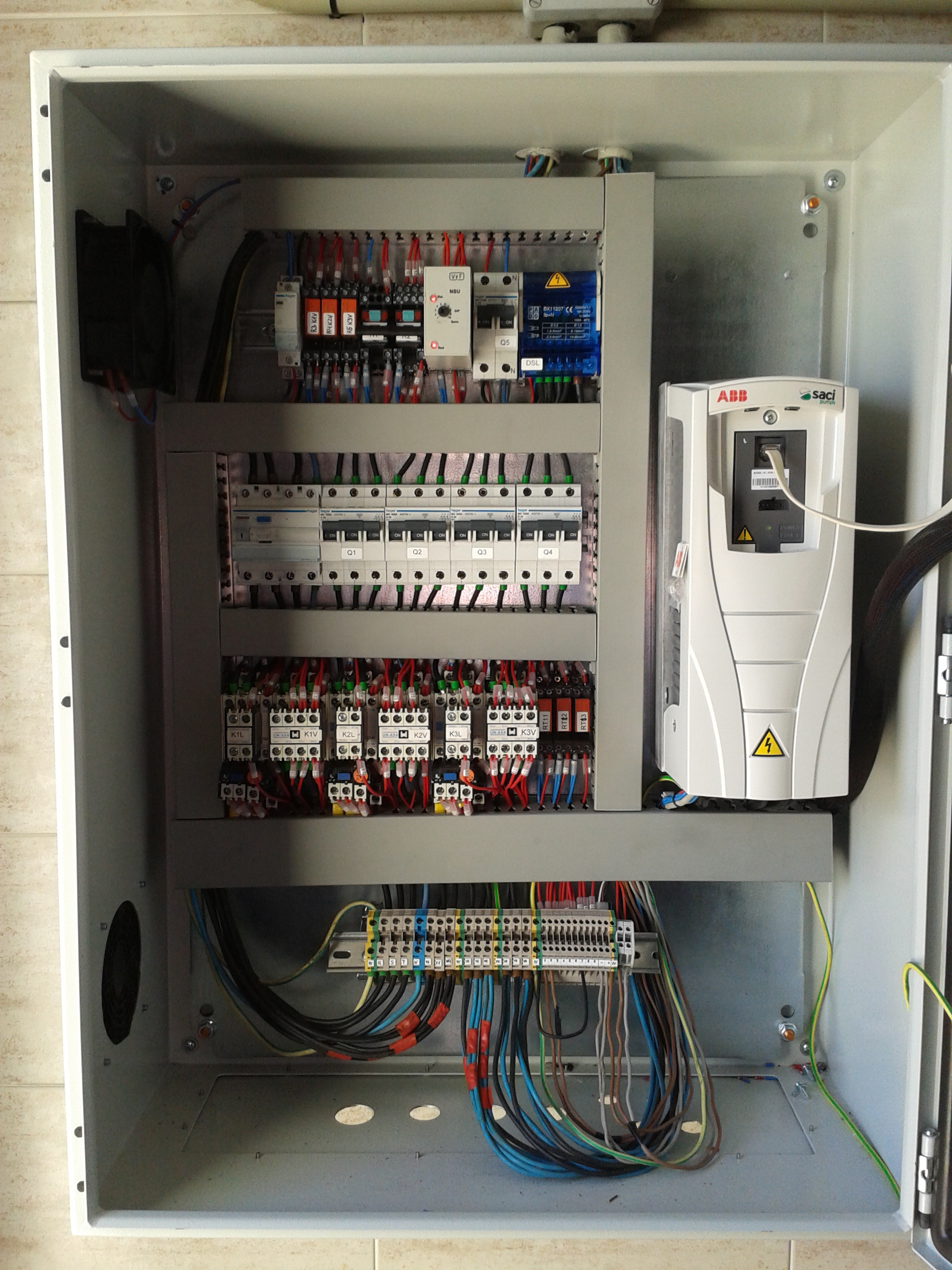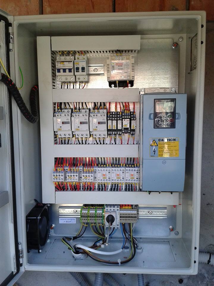 Realizamos el montaje de cuadros eléctricos para motores de pozo, de piscinas, de grupos de presión, arranques de motores estrella-triangulo, etc. También estamos cualificados en el montaje y puestas en marcha de sistemas con variadores de velocidad, que hoy en día, es el sistema que mas demanda hay. Los mas utilizados en el sector son los ABB, SPEEDRIVE, VACON, ETC.